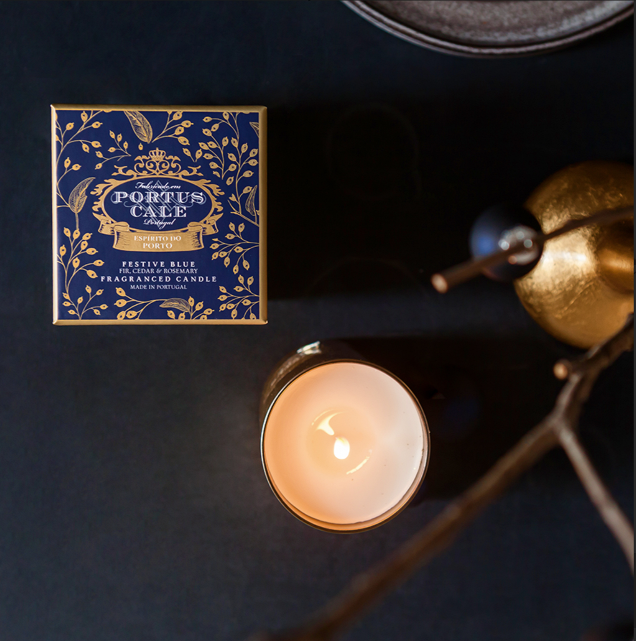 —Аромасвеча в золоте "Праздничный синий" 210гр Portus Cale