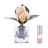 ROSE BUD white peach Ароматизированная роза, коралловый,  прозрачная ваза, 1 спрей       ВхШхД  13,5